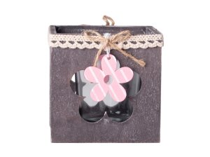 Svícen dřevo Kytička na čajovou svíčku v přírodní a růžové barvě 85 mm