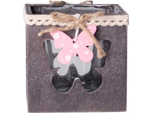 Svícen dřevo Motýl na čajovou svíčku v přírodní a růžové barvě 85 mm