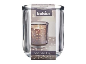 Čirý skleněný svícen Bolsius na Sparkle light – stylový a bezpečný doplněk pro domácí svícení.