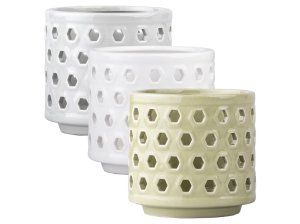 Keramický svícen na čajovou svíčku o rozměru 120 × 120 mm v různých barevných variantách.