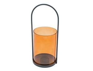 Dekorativní, skleněný svícen se vyrábí strojově z tónovaného skla.