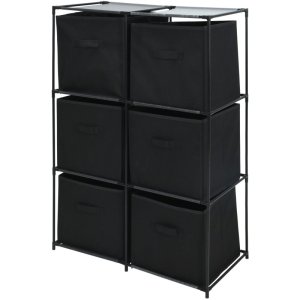 zásuvková skříň se 6 přihrádkami, kovový rám s netkanými policemi 80gsm, rozměr: 68x35xh102cm, tloušťka trubky: 95mm, černá barva rámu, se 6 netkanými úložnými boxy a rukojetí
