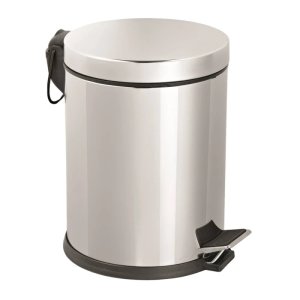 Kulatý odpadkový koš s nášlapným pedálem a vyjímatelnou plastovou vložkou.
