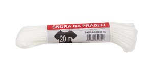 Šňůra prádelní PPV, 20 m, pr. 3 mm. délka: 20 m průměr: 3 mm materiál: PPV barva: bílá Tkaninová šňůra na prádlo k zavěšení na balkón i zahradu.