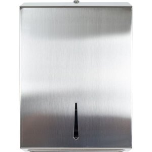 Nástěnný nerezový držák na skládané papírové ručníky.