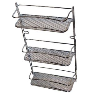 Kvalitní dvoupatrová koupelnová polička vyrobená z chromovaného drátu.