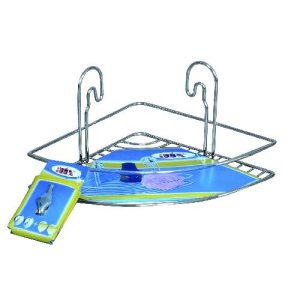 Kvalitní rohová koupelnová polička vyrobená z chromovaného drátu.