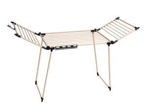 Rozkládací sušák na prádlo Classic 200 Easy značky Leifheit. Šířka sušáku je pouhých 51 cm.