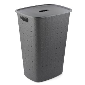 Koš na prádlo o objemu 52 l o rozměrech 65 x 44 x 28 cm v barvě šedé.