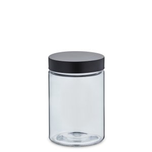 Pro větší pořádek při skladování: kulatá skleněná dóza se šroubovacím víčkem z nerezové oceli.