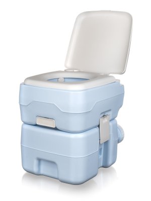 Praktická a pevná plastová cestovní toaleta o objemu 19 litrů.