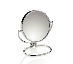 průměr: 17 cm materiál: Cr zvětšení 1×/2× Kosmetické oboustranné zrcátko se stojánkem vhodné do koupelny nebo do ložnice.