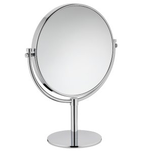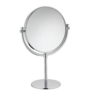 průměr: 17 cm materiál: Cr zvětšení 1×/2× Vysoké kosmetické oboustranné zrcátko se stojánkem vhodné do koupelny nebo do ložnice.