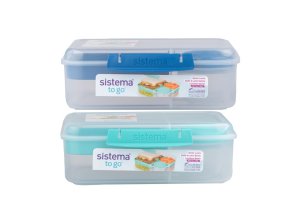 Sistema® TO GO™ Tříkomorová krabička s nádobou na jogurt a 2 tácky 1,65 l se skládá ze tří komor, které vám umožní oddělit různé druhy potravin.