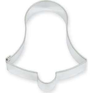 Vykrajovátko cukroví ve tvaru zvonečku vyrobené z pocínovaného plechu.