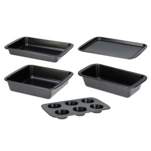 Pečicí sada – 5 ks, uhlíková ocel s nepřilnavým povlakemObjevte kompletní pečicí sadu z kvalitní uhlíkové oceli s odolným nepřilnavým povlakem, která vám umožní připravit chléb, koláče, muffiny i cukroví …