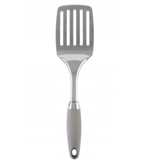 Nerezová kuchyňská obracečka se sot touch rukojetí a očkem na zavěšení.