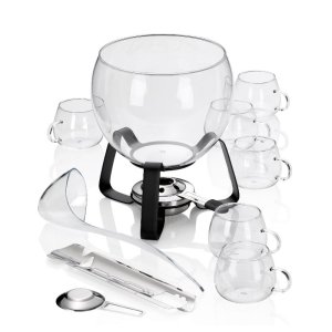 Pro stylové večery s přáteli.Sada obsahuje:- žaruvzdornou skleněnou punčovou mísu,- objem 3,5 l,- 6 sklenic, - akrylovou naběračku,- nerezové kleště na cukr,- kovový stojan průměr 13,5 cm,- bezpečnostní …