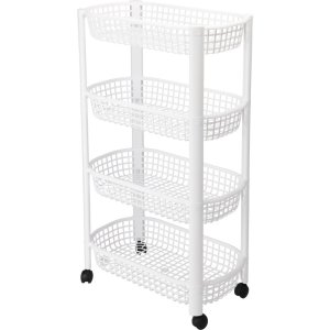 Kuchyňský vozík 4patrový – 79 cm, bílý• 4 otočná kolečka pro snadnou manipulaci• 4 praktické košíky na uskladnění všeho potřebného• Materiál: odolný PP plast• Rozměry: 46,5 × 26 × 78,8 cm• Barva: bíláLehký, …