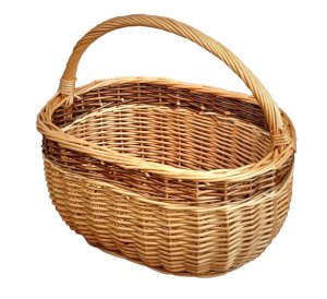 Košík nákupní, oválný, 36 x 25 x 30 cm, ucho podél, lakovaný, NOVÝ. rozměry: 36 x 25 x 30 cm materiál: proutí, lakovaný Lakovaný proutěný koš lze samozřejmě využít pro přepravu ovoce.