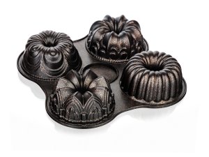 Forma 4 bábovky 14 cm, MAJESTIC Margarita, nepřilnavý povrch, litá. průměr bábovky: 14 cm rozměry celé formy: 33,5 x 33,5 cm Litá hliníková pečící forma na 4 malé bábovky o průměru 14 cm, MAJESTIC Margarita …