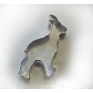 Vykrajovátko ve tvaru prasátka s rozměry 7 x 4,4 cm z pocínovaného plechu.