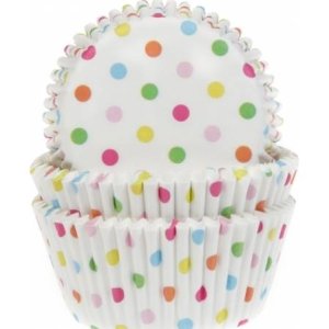 "Taštička z pevného papíru s barevným potiskem, vhodná na přenášení zákusků, cukroví, koláčů a podobného pečiva.
