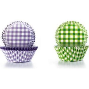 Košíčky na dortíčky se zeleným či fialovým vzorem se budou skvěle vyjímat na vašem pikniku.