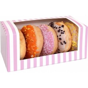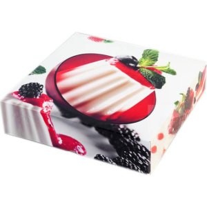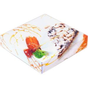"Krabice s barevným potiskem na rolády, dorty, zákusky, cukroví a různé další cukrářské výrobky z velmi kvalitního pevného papíru.