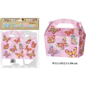 Krabice z tvrdého potištěného papíru na větší dorty, případně větší množství zákusků nebo cukroví.