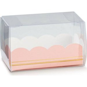 Krabička na makronky s průhledným víkem.