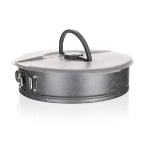 Forma na dort 26 cm, nepřilnavý povrch GRANITE + PH víko. průměr: 26 cm výška: 8 cm tloušťka stěny: 0,4 mm hmotnost netto: 0,514 kg materiál: karbonová ocel s nepřilnavým povrchem Xynflon barva: šedá …