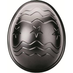 Forma na pečení s motivem velikonočního vajíčka, zhotovená z nerezové oceli a potážená nepřilnavým povrchem.