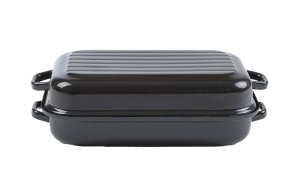 Jednodílný oboustranně smaltovaný pekáč bez ucha.