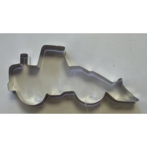 Kovové vykrajovátko na cukroví ve tvaru nákladního auta s rozměry 7,6 x 3,8 cm.