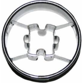 Vykrajovátko cukroví ve tvaru kolečka s dílkem puzzlí uprostřed.