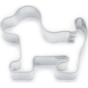Vykrajovátko na cukroví ve tvaru pejska s rozměry 5,5 x 4,4 cm.