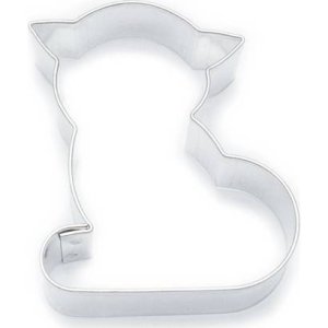 Vykrajovátko na cukroví ve tvaru kočičky s rozměry 4,7 x 5,5 cm.