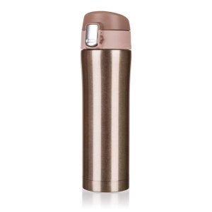 Termoska s nerez pojistkou, 0,42L Termoska vyrobena z vysoce kvalitní nerezavějící oceli Tlačítkový mechanismus otevření termosky vyroben z vysoce kvalitního plastu Nerezová vložka činí termosku téměř …
