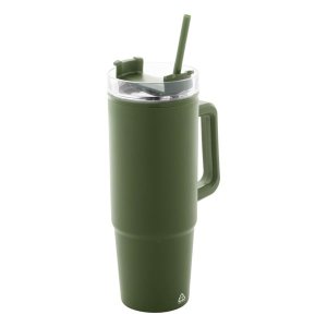 Dvoustěnný termo hrnek z recyklovaného PP plastu s plastovým víčkem na pití a brčkem Objem: 900 ml Výška: 24 cm