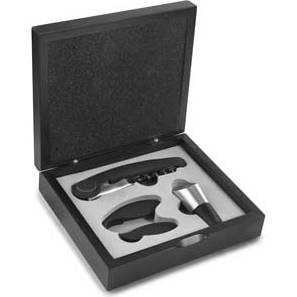 Sada na víno 4 dílná, v černé dárkové krabičce Rozměr: 22,3 x 8 x 3 cm