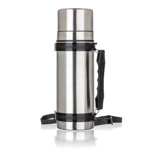 Nerezová cestovní termoska AKCENT o objemu 1 l, má dvouplášťové provedení, vnější i vnitřní povrch je vyroben z nerezu.