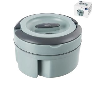 Termomísa v plastovém obalu s nerezovým vnitřkem udrží vložený pokrm po dlouhou dobu teplý nebo naopak chladný.