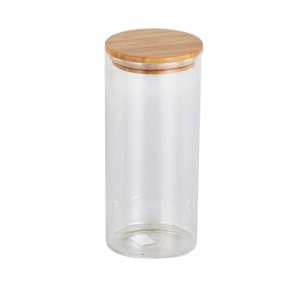 rozměry: pr. 10 cm, výška 22,5 cm materiál: sklo, bambus Skleněná kuchyňská dóza 1,3 l s bambusovým víčkem je ideální k uchování sypkých potravin.