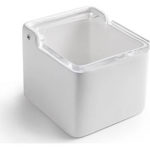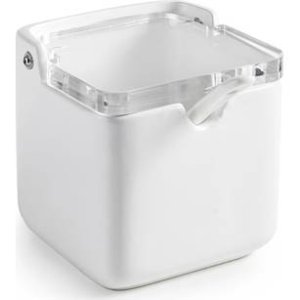 Keramická dóza na sůl s plastovým víkem a lžičkou pro snadné dávkování.