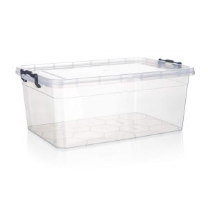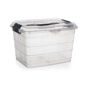 Box úložný GEMA 14 l, 42 x 27 x 18 cm, víko, klip, PH ŠE/TRA. objem: 14 l rozměry: 42 x 27 x 18 cm materiál: plast barva: transparentní box, šedé klipy Plastový multifunkční box GEMA o objemu 14 l se …