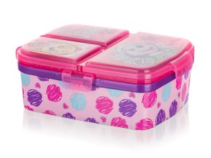 Dětský dělený svačinový box s motivem PATROLA GIRL se zavírá pomocí klipsu, který zajistí, že se vám nic nevysype.