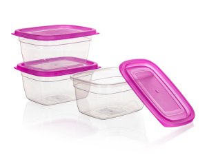 Sada plastových dóz na potraviny, které lze použít do mikrovlnné trouby, chladničky i mrazáku.