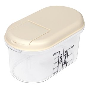 - transparentní dóza s odměrkou vhodná na sypké hmoty - na ukládání mouky, cukru, strouhanky, krupici aj. - odměrka na mouku, cukr, vodu - rozměry 16.5 x 9 x 8 cm - český výrobce - EAN 8590474916300