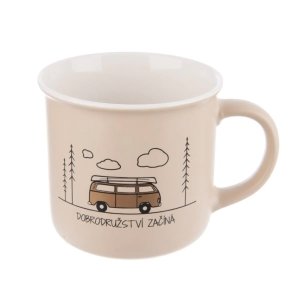 Dekorovaný hrnek DOBRODRUŽSTVÍ ZAČÍNÁ s uchem.